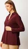 Kadın Büyük Beden Polo Yaka Basic Bluz 61332 Bordo