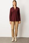 Banega Curve Büyük Beden Pamuklu Likralı V Yaka Basic Düz Uzun Kol Bordo Bluz - Image 1