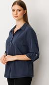 Kadın Büyük Beden Yakası Düğmeli Cep Detaylı Bluz 61356 Indigo