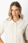 Detay: Gömlek yaka tasarımıyla klasik bir görünüm sunan örme hırka, astarsız yapısıyla hafif ve konforlu bir kullanım sağlar. Kısa kol detayıyla sıcak havalarda ideal bir tercih olan bu cepsiz model, düğmeli kapama özelliğiyle pratikliği şıklıkla buluşturur. Yumuşak örme dokusuyla günlük stilinize sade ve zarif bir dokunuş katar;
