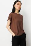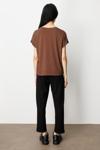 ON Kadın Önü Verev Sıfır Yaka Bluz 61584 Kahverengi