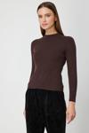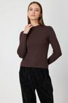 ON Kadın Sıfır Yaka Örgü Desenli Triko Kazak 69314 Kahverengi