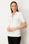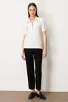 ON Kadın Yakası Fermuarlı Kısa Kol Triko Kazak 65330 Ekru