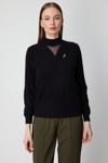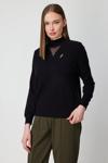 ON Kadın Yakası Tül Detaylı Pamuklu Triko Kazak 60342 Siyah