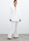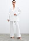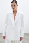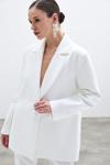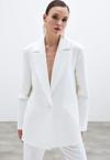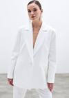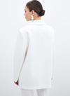 Kruvaze yaka, iç astarlı, düz uzun kol, kalça altı boy, süs cep, ön tek düğmeli salaş ceket.