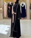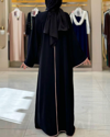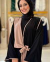 Zarif çizgi detayları ve modern kesimiyle öne çıkan önden bağlama detaylı abaya, günlük kombinlerde ve özel davetlerde şıklığınızı tamamlar. Hafif ve dökümlü yapısıyla Medine ipeği kumaş, gün boyu konfor ve zarafet sunar.