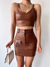 Bu özel tasarım deri etek, gardırobunuzun vazgeçilmezi olmaya aday! Şık ve şık bir görünüm sağlayan öndeki iki cepli detayı ile dikkat çekiyor.