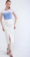 Oldukça esnek likralı bir kumaştır. İnce rahat bir kumaş yapısı vardır. İç belli etmez. Arka cepleri aktiftir. Ürün uzunluğu 82 cm, yırtmaç uzunluğu 33 cm dir.