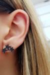 Oniks Taşlı Yıldızlı Gümüş Üzerine Rose Altın Kaplamalı Küpe