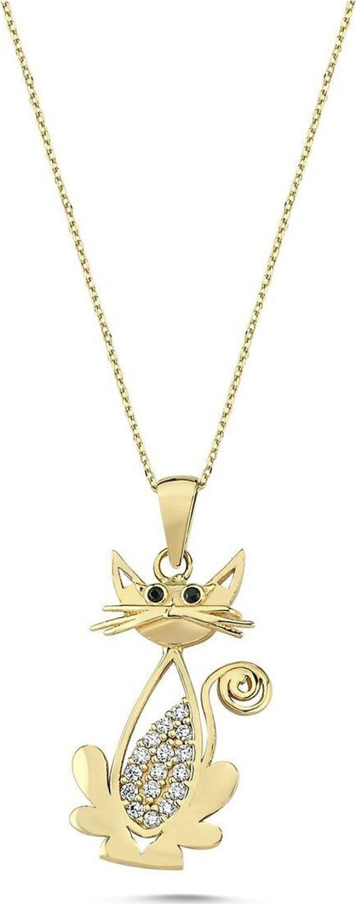 14 ayar altın 2.00 gram 45 cm zincir uzunluğunda zirkon taşlı kedi kolye. Tam ayar garantilidir.