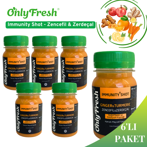 100% Cold-Pressed Zencefil & Zerdeçal Shot 6'lı Paket Bağışıklık Desteği Içecek 80 ml
