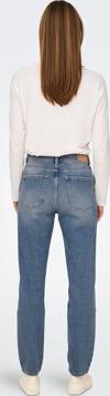 Detay: Yüksek bel, düz kalıp, ön ve arka cep detaylı jean pantolon;