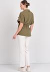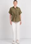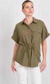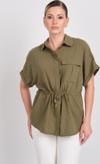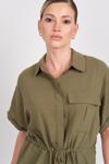 Detay: Bu model gömlek; kısa kollu, tek cepli, belden bağlamalı ve düğmeli yapısıyla yaz aylarının konforunu ve tarzını bir arada sunar. Özellikle belden bağlamalı kesimiyle bedeni narin bir şekilde saran bu model gömlek, günlük kombinlere modern bir dokunuş katarken düğmeleri sayesinde klasik ve düzenli bir görünüm sağlar. Tek cep detayıyla sportif bir tavır kazandıran kısa kollu tasarımı, sıcak havalarda ferah bir kullanım sunar.;