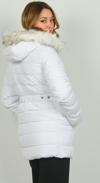 Detay: Kapüşonlu, cepli, tam fermuar kapamalı mont;