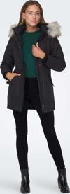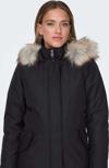Detay: Suni çıkarılabilir kürk, yan cepli, midi boy mont;