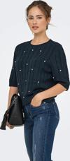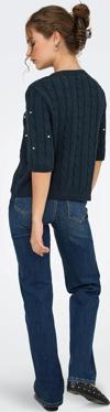 Only Kadın Onlsussı İnci ve Taş Süslemeli Kısa Kollu Örme Kazak 15352067 Lacivert