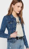 Detay: Ayrık yakalı, uzun kollu ve düğmeli manşetli kadın denim ceket, şıklığı ve rahatlığı bir arada sunar. Kısa boyutuyla modern ve zarif bir görünüm sağlayan bu ceket, göğüs cepleri ve düğme kapama detayı ile pratiklik ve stil kazandırır. %98 pamuk ve %2 elastan karışımı dimi örgü dokuma kumaşı sayesinde, bu kot ceket, yüksek kalite ve konforu bir araya getirir;