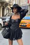 Elbisenin ön kısmındaki firfir detayları, dinamik bir görünüm sağlarken, alt kısmındaki volanlar hareket özgürlüğü sunar. Bu özellikler, elbisenin hem şık hem de rahat bir şekilde giyilmesini mümkün kılar. Yüksek kaliteli kumaş kullanımı, cildin nefes almasını sağlarken, gün boyu konforlu bir deneyim sunar.