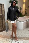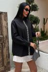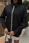 - Zarif tasarımıyla dikkat çeken önü şerit taşlı gömlek, siyah rengiyle her gardıropta klasik bir yer edinir.