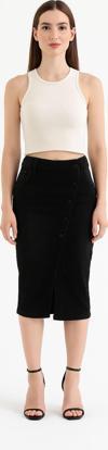 Kaliteli denim kumaştan üretilmiştir. Likralı esnek rahat bir yapısı vardır. Orta kalınlıkta kumaşa sahip. Düğmeli modeldir. Düğmeler arası 7cm dir. 5 cep bulunmaktadır. Manken üzerindeki beden S bedendir. Bel ölçüsü 37 cm dir. Ön yırtmacı vardır. Yırtmaç uzunluğu en alt düğmeden 32 cm dir. Ürünün boy uzunluğu 77 cm dir.