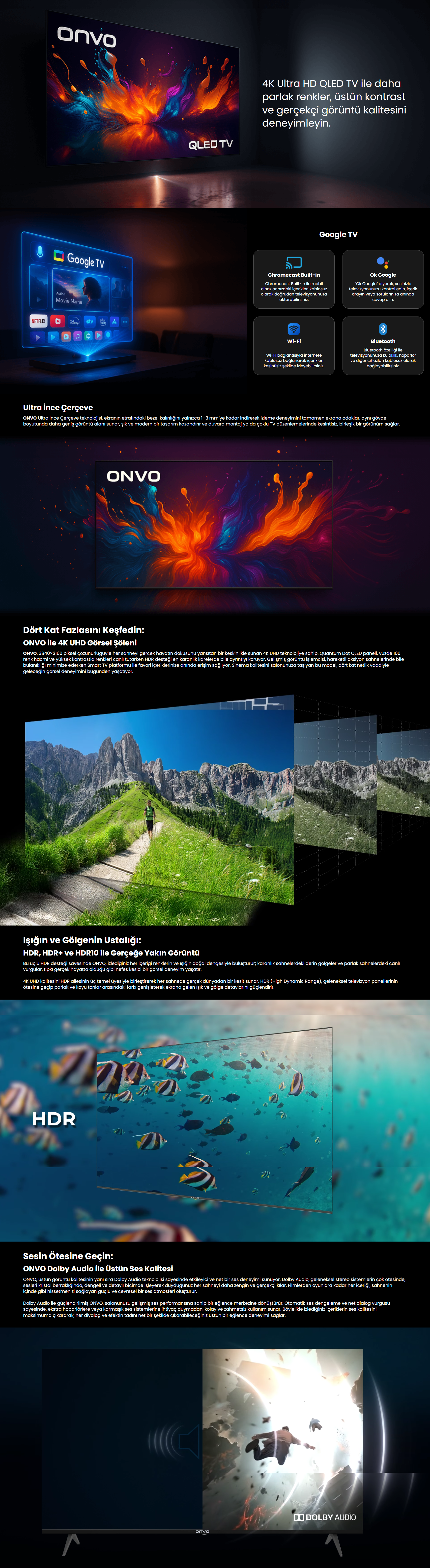 Onvo 50OVF9001UQ 4K Ultra HD 50" 127 Ekran Uydu Alıcılı Google Smart QLED TV