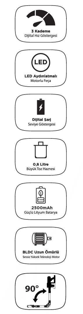 - 0,8L Toz Haznesi & 2500mAh Batarya: Uzun ve kesintisiz kullanım.