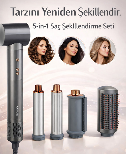 5 Farklı Başlık, Sonsuz Stil: Set içerisinde bulunan kurutma başlığı, hacim verici fırça, düzleştirici fırça ve farklı boyutlardaki maşa aparatları ile her gün yeni bir tarz yaratın.