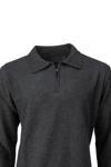 Oppland Erkek Kışlık Kazak Pamuklu Dokuma Yarım Fermuarlı Polo Yaka Uzun Kollu Düz Renk Rahat Kesim Antrasit 2XL