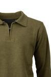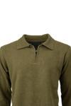 Oppland Erkek Kışlık Kazak Pamuklu Dokuma Yarım Fermuarlı Polo Yaka Uzun Kollu Düz Renk Rahat Kesim Haki XL