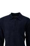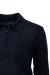 Oppland Erkek Kışlık Kazak Pamuklu Dokuma Yarım Fermuarlı Polo Yaka Uzun Kollu Düz Renk Rahat Kesim Lacivert 2XL