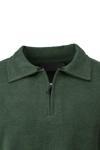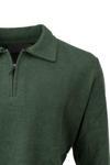 Oppland Erkek Kışlık Kazak Pamuklu Dokuma Yarım Fermuarlı Polo Yaka Uzun Kollu Düz Renk Rahat Kesim Yeşil 2XL