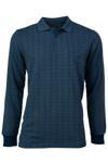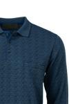 Oppland Erkek Mevsimlik Kazak Pamuklu Dokuma Düğmeli Polo Yaka Cepli Uzun Kollu Kırçıl Desenli Rahat Mavi XL