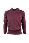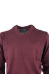 Oppland Erkek Uzun Kollu V Yakalı Düz Renk Klasik Model Rahat Kesim Tam Kalıp Yünlü Dokuma Kazak Bordo S