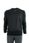 Oppland Erkek Uzun Kollu V Yakalı Düz Renk Klasik Model Rahat Kesim Tam Kalıp Yünlü Dokuma Kazak Siyah 2XL