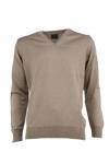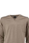 Oppland Erkek Uzun Kollu V Yakalı Düz Renk Klasik Model Rahat Kesim Tam Kalıp Yünlü Dokuma Kazak Sütlü Kahverengi S