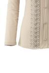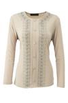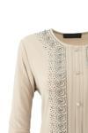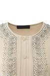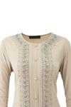 Oppland Kadın Anne Bluz Likralı Sandy Kumaş Şık Ve Modern Elmasım Taşlı Yuvarlak Yakalı Rahat Kesim Krem 2XL