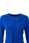 Oppland Kadın Anne Bluz Likralı Sandy Kumaş Şık Ve Modern Kuvars Taşlı Yuvarlak Yakalı Rahat Kesim Saks XL