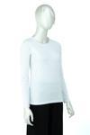 Oppland Kadın Düz Renk Yuvarlak Yaka Uzun Kollu Dar Kesim Bedene Oturan Likralı Pamuk Kumaş Badi Beyaz XL