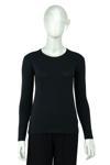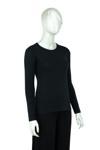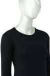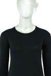 Oppland Kadın Düz Renk Yuvarlak Yaka Uzun Kollu Dar Kesim Bedene Oturan Likralı Pamuk Kumaş Badi Siyah S