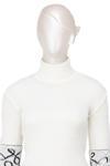 Oppland Kadın Kışlık Kolları Şık Boncuklu Tam Boğazlı Yaka Bedene Oturan Örme Triko Badi Kazak Beyaz Standart