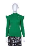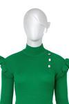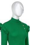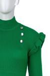 Oppland Kadın Kışlık Kolları Şık Düğmedetaylı Yarım Yaka Bedene Oturan Likralı Örme Triko Badi Kazak Yeşil Standart