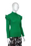 Omuzları Şık Fırfırlı Yarım Yaka, Uzun Kollu,Kolları Düme Detaylı