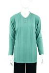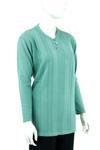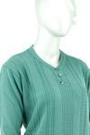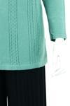 Oppland Kadın Kışlık Motifli Armut Yaka Üç Düğmeli Likralı Pamuklu Kardelen Dokuma Anne Kazak Su Yeşili L