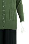 Oppland Kadın Kışlık Örgü Desenli Düğmeli Çift Cepli Uzun Kollu Likralı Kardelen Dokuma Anne Hırka Yeşil 2XL