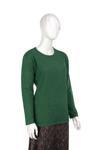 Oppland Kadın Kışlık Pamuklu Örme İnce Triko Anne Kazak Yuvarlak Yaka Desenli Uzun Kol Tam Kalıp Zümrüt Yeşili XL