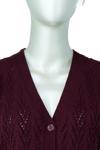 Oppland Kadın Kışlık Pamuklu Triko Klasik Örme Anne Yelek Kilim Örgü Model Önden Düğmeli Çift Cepli Bordo Standart