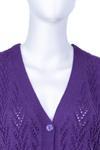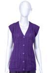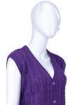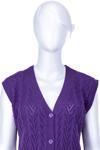 Oppland Kadın Kışlık Pamuklu Triko Klasik Örme Anne Yelek Kilim Örgü Model Önden Düğmeli Çift Cepli Koyu Eflatun Standart