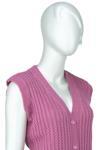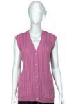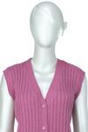 Oppland Kadın Kışlık Pamuklu Triko Klasik Örme Anne Yelek Saç Örgü Model Önden Düğmeli Çift Cepli Gül Kurusu Standart