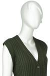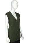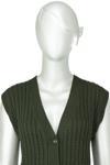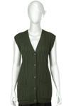Oppland Kadın Kışlık Pamuklu Triko Klasik Örme Anne Yelek Saç Örgü Model Önden Düğmeli Çift Cepli Haki Standart