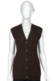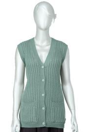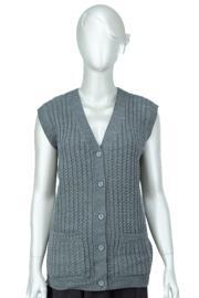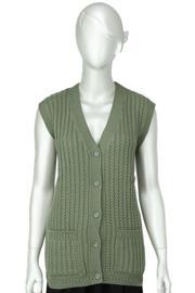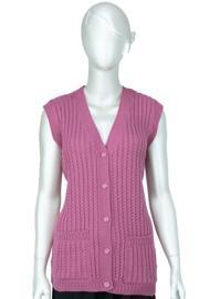Oppland Kadın Kışlık Pamuklu Triko Klasik Örme Anne Yelek Saç Örgü Model Önden Düğmeli Çift Cepli